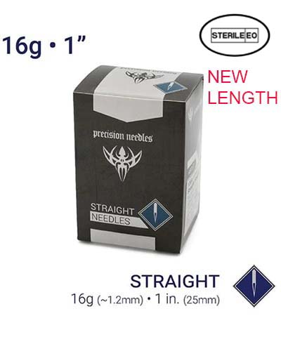 One Box of 100 Sterilized Piercing Needles by Precision — Size 16g – 1″