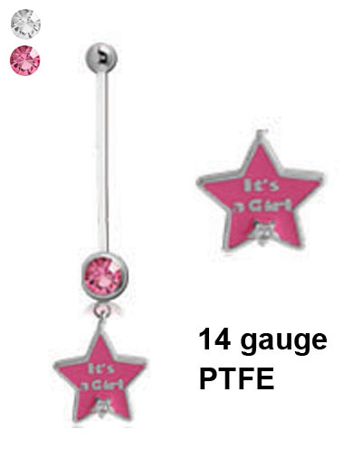 PTFE fashion navel bananas. Bottom stone comes with clear or pink jewelled ball only. Navel bar is 30mm length.
