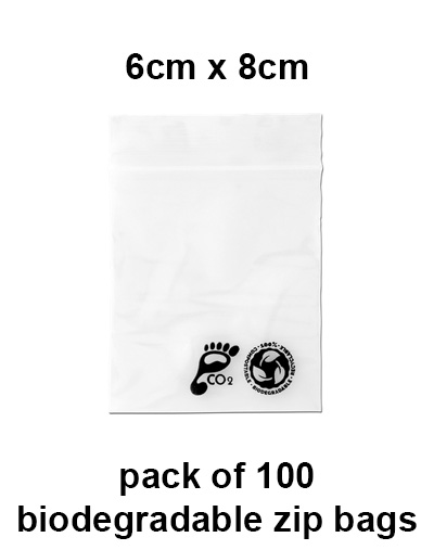 Pack of 100 biodegradable zip bags.