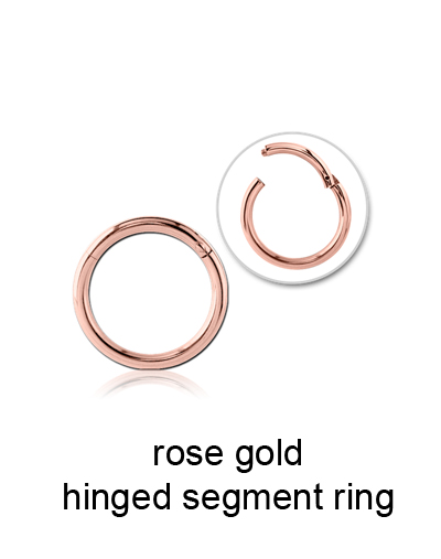 Rose gold 316L surgical steel hinged segment rings are fashion jewellery and are safe to be auto-claved.