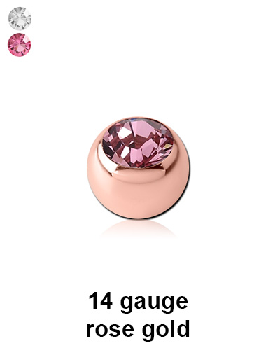 Rose gold 316L surgical steel jewelled balls for 1.6mm/14g jewellery. Color CR and RO only.