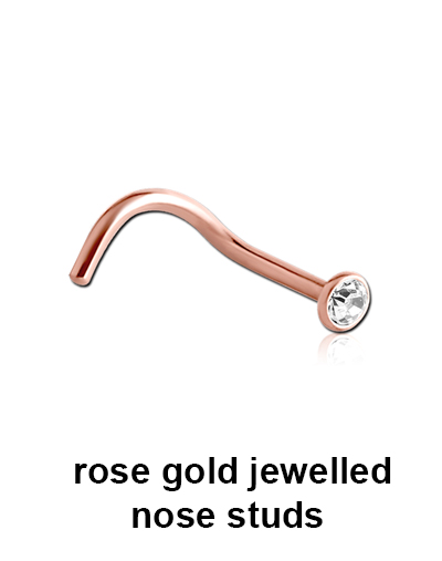 Rose gold PVD coated 316L surgical steel nose studs with 2.35mm jewel are fashion jewellery and are safe to be auto-claved.