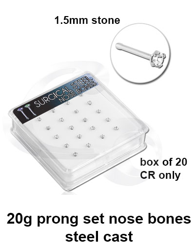316L surgical steel cast straight prong set nose bones with 1.5mm stone – 20g – Box of 20