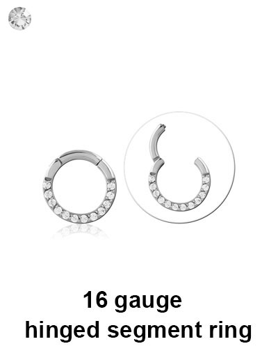 316L surgical steel jewelled hinged multi purpose ring available in 16g only.