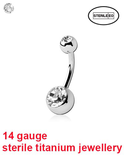Sterile 14g Titanium 6Al-4V-Eli ASTM F-136 double jewelled navel banana.  One time use only.