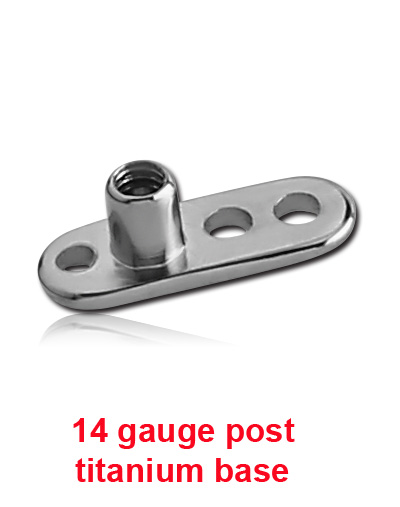 Standard 14 gauge internally threaded Titanium 6Al-4V-Eli ASTM F-136 dermal anchor. Pin only.