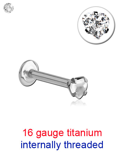 TINMLBSJ2-16g Titanium Internally Threaded Prong Set Jewelled Heart Micro Labret , , , , , ,