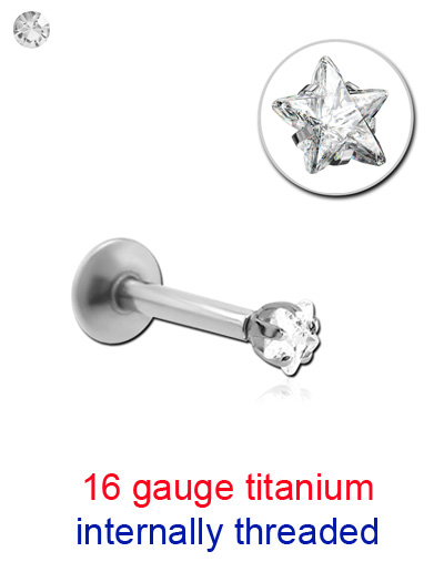 TINMLBSJ4-16g Titanium Internally Threaded Prong Set Jewelled Star Micro Labret , , , , , ,