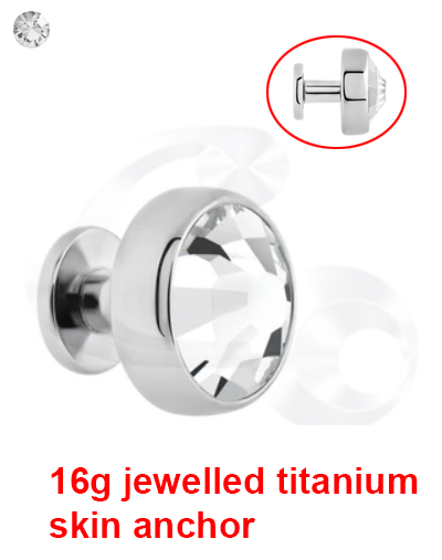Our single-piece jeweled titanium skin anchor is priced per one. You can use a 1mm biopsy punch to insert these skin anchors.