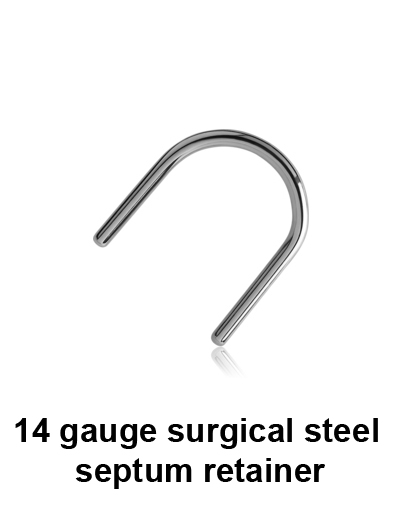 316L surgical steel U shape septum retainer in 14g /1.6mm.