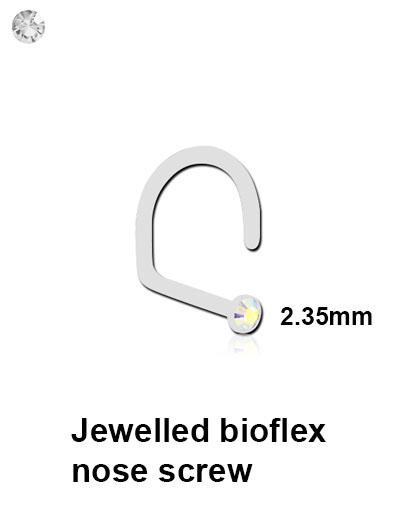 Bioflex nose screw available in 18g only with a 2.35mm jewelled head.