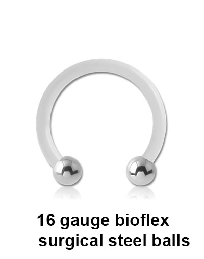 Bioflex is an excellent piercing material that can be steam sterilized or autoclaved.  Bioflex is highly bio-compatable.  It reduces the chances of any allergic reaction to almost zero.  Bioflex is adjustable so it can be cut to any length.  It is flexible and bends with the body for ultimate comfort.  Bioflex is a medical grade plastic.