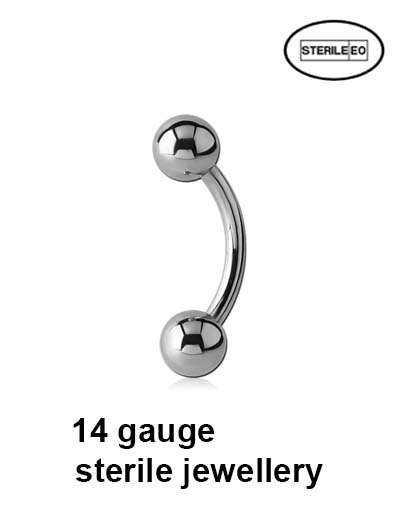 Sterile 14g surgical steel navel banana with 4mm balls.  One time use only.
