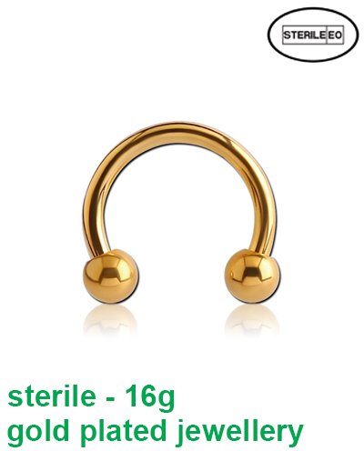 Sterile 16g gold plated (316L surgical steel) micro circular barbell. One time use only.