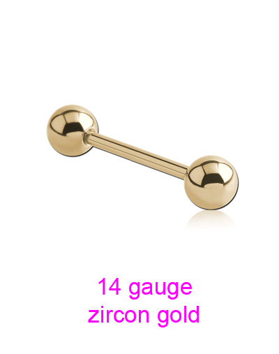Zircon gold PVD coated 316L surgical steel barbell.