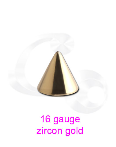 Zircon gold PVD cones for 1.2mm/16g jewellery.