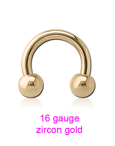 Zircon Gold is a surgical steel base with a golden colored PVD coating. The PVD formula is proven to be biocompatible and permanent. Autoclavable and ultra safe, Zircon Gold is an extremely high quality range of jewellery.